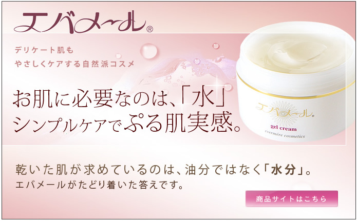 クチコミで広がり多くのユーザーが愛用し続ける「エバメール化粧品」のラインナップ。 一番人気のエバメール ゲルクリームをはじめ、洗顔、ファンデーション、ヘアケア用品、初めてご利用になられる方へのお試しトライアルセットまで。午後2時までのご注文は即日出荷、3000円以上のお買い物&各種お試しトライアルセットは配送料無料でご自宅までお届け致します。 お買い物は以下より トータルヘルスデザイン ショップページへとお進みください。